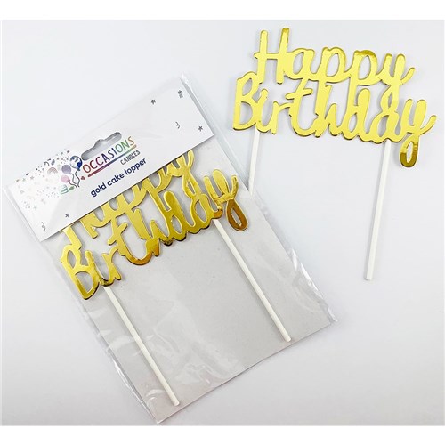 ALPEN OCCASIONS HAPPY BIRTHDAY CAKE TOPPER 100W X 135MMH METALLIC GOLD