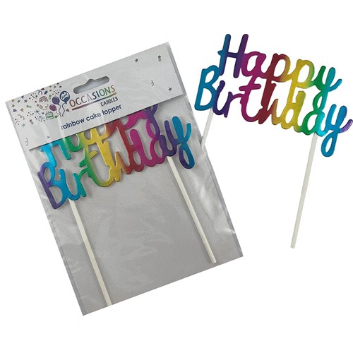 ALPEN OCCASIONS HAPPY BIRTHDAY CAKE TOPPER 100W X 135MMH METALLIC RAINBOW