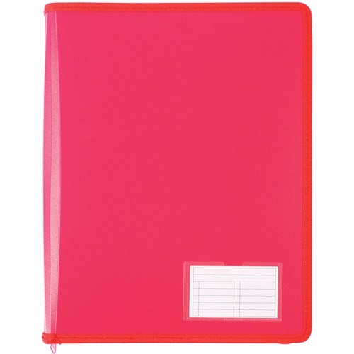 Features an easy open and close zip, perfect for keeping your documents secure Suitable for carrying documents up to A4 size Made from strong and durable polypropylene which protects your work from damage Contains 25mm 2 D-rings which can store up to 200 sheets of paper Contains inside pocket to carry those loose items Includes name or business card holder on front for easy identification Available in Black, Blueberry, Melon, Lime, Green, Navy, Mango