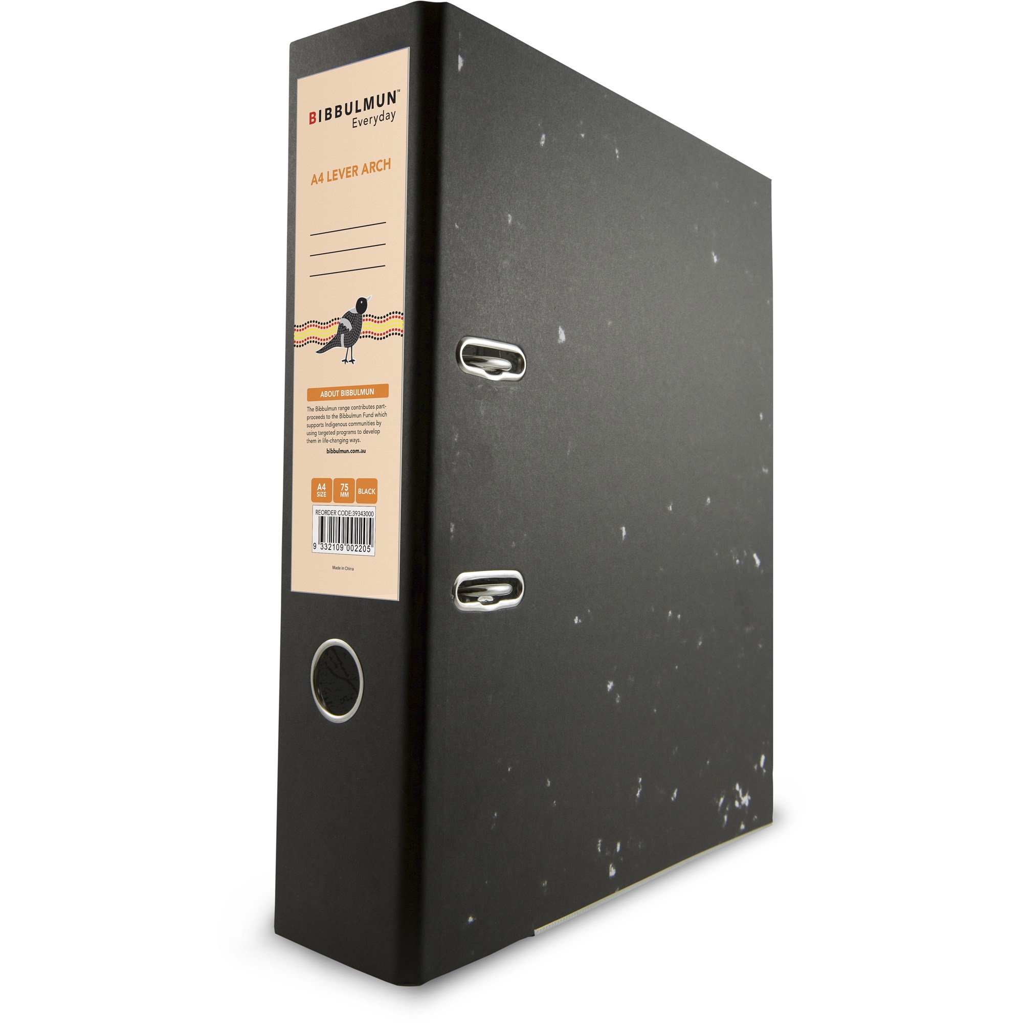 Tough and durable lever arch file in a black mottle finish. 75mm spine holds up to 375 sheets of paper. The file includes a locking lever arch mechanism to keep pages secure, rado fitting allows easy closure so you can fit more on your shelf and spine label for easy identification of contents. The Bibbulmun Range contributes part proceeds to the Bibbulmun Fund which supports Indigenous communities by using targeted programs to develop them in life-changing ways.