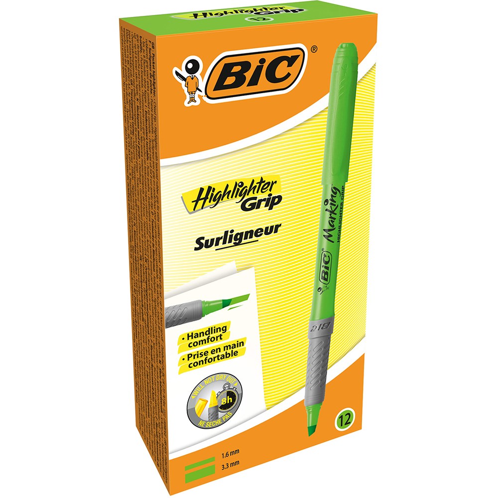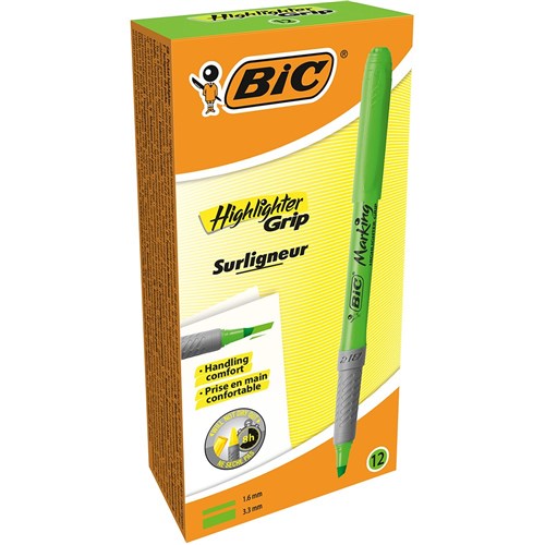 BIC BRITE LINER GRIP HIGHLIGHTER CHISEL 1.6-3.3MM GREEN PACK OF 12