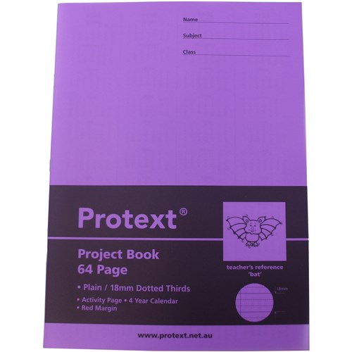 PROTEXT POLY PROJECT BOOK 330X245MM PLAIN & 18MM DOTTED THIRDS 64 PAGE-BAT