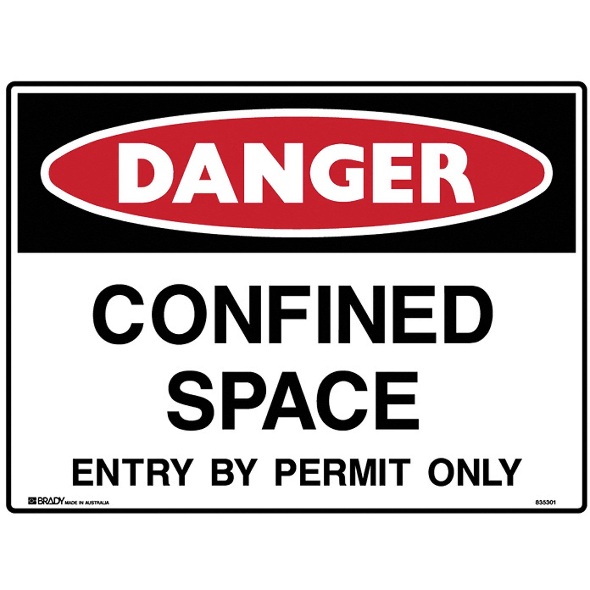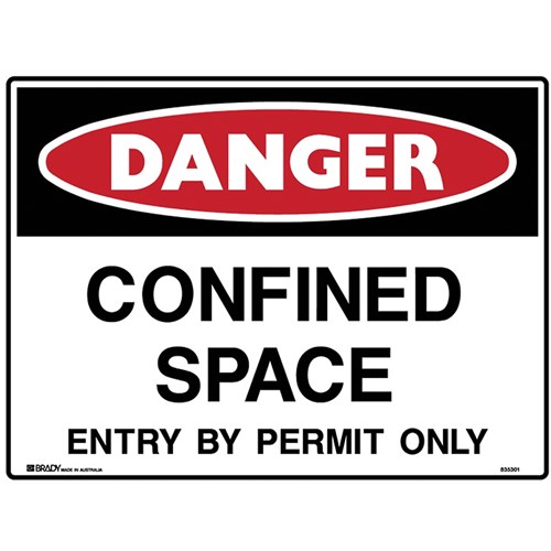 BRADY DANGER SIGN CONFINED SPACE ENTRY BY PERMIT ONLY 600W X 450MMH POLYPROPYLENE