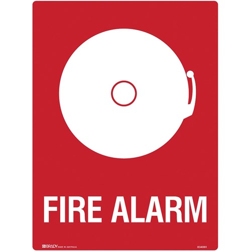 BRADY FIRE SIGN FIRE ALARM 450W X 600MMH POLYPROPYLENE WHITE/RED