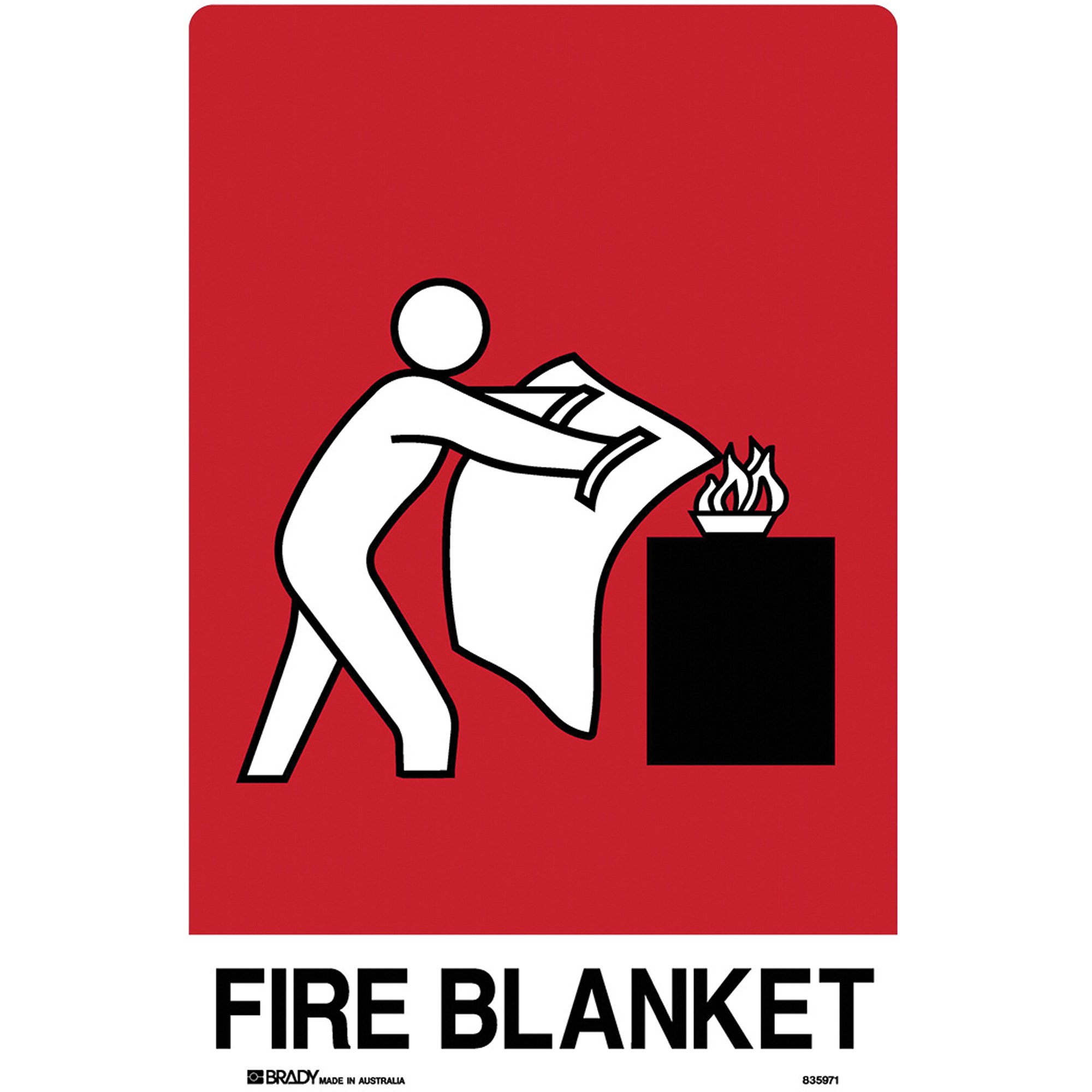 BRADY FIRE SIGN FIRE BLANKET 300W X 450MMH METAL WHITE/RED/BLACK
