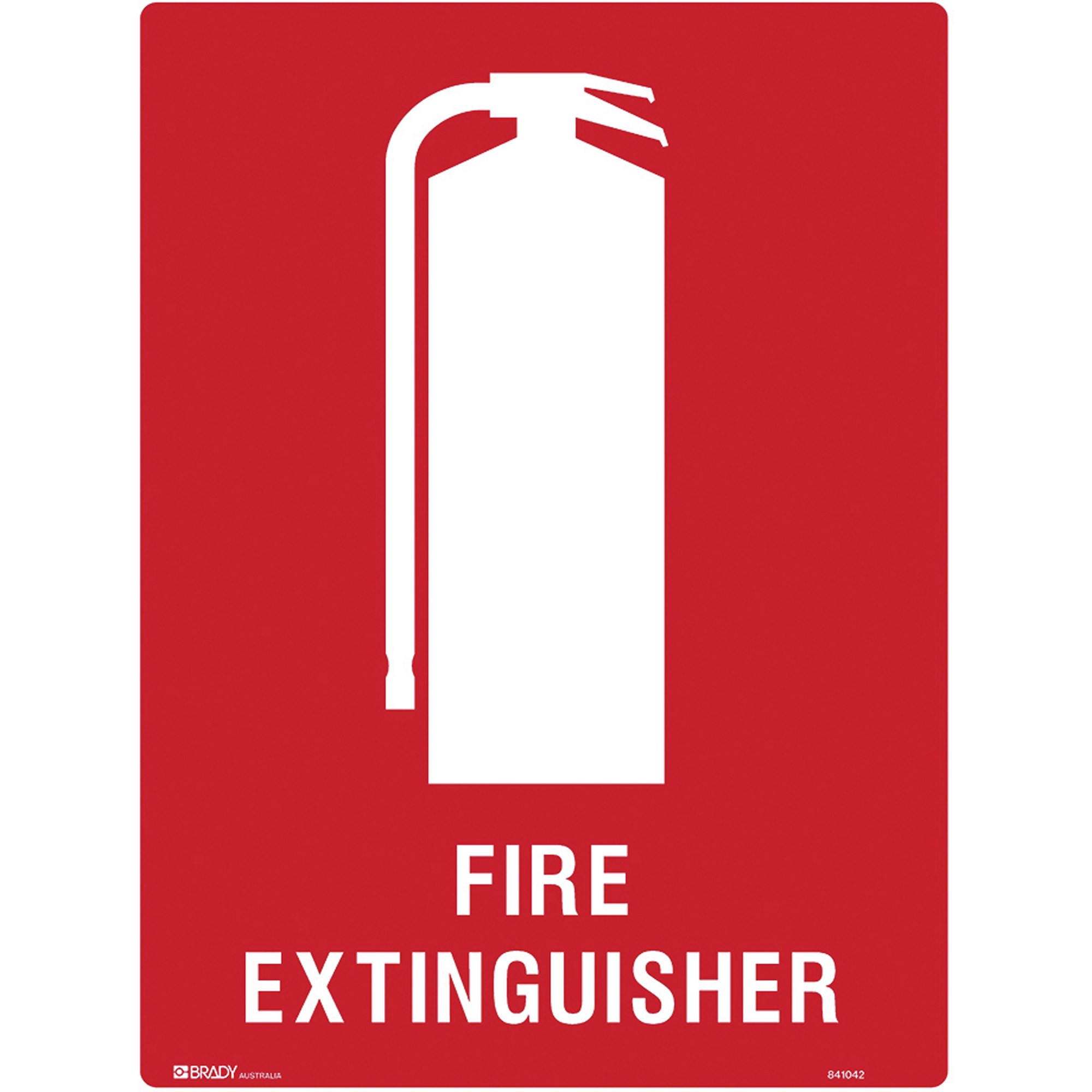 BRADY FIRE SIGN FIRE EXTINGUISHER 450W X 600MMH METAL WHITE/RED