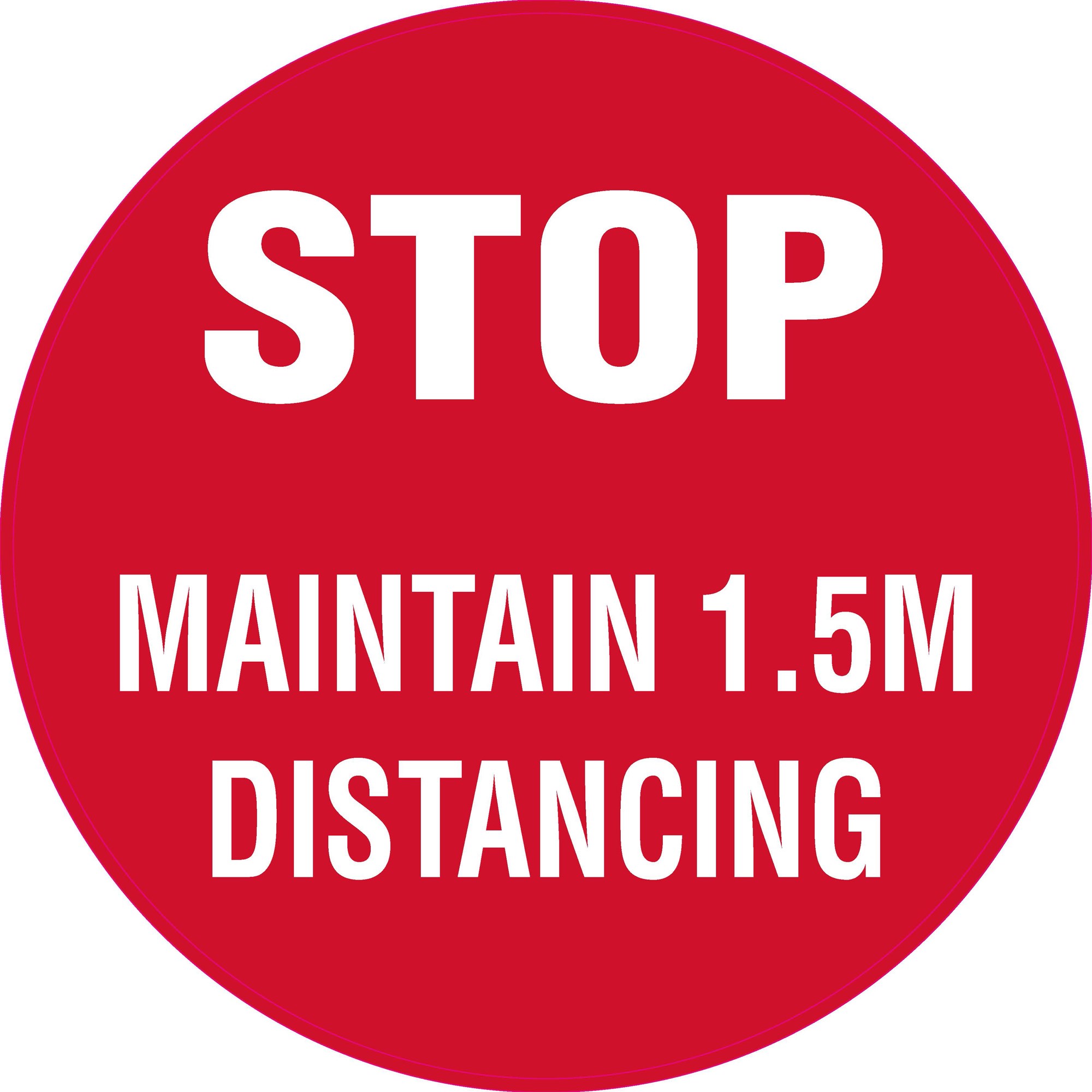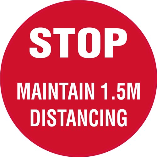 BRADY FLOOR MARKER STOP MAINTAIN 1.5M DISTANCING 440MM DIAMETER RED/WHITE
