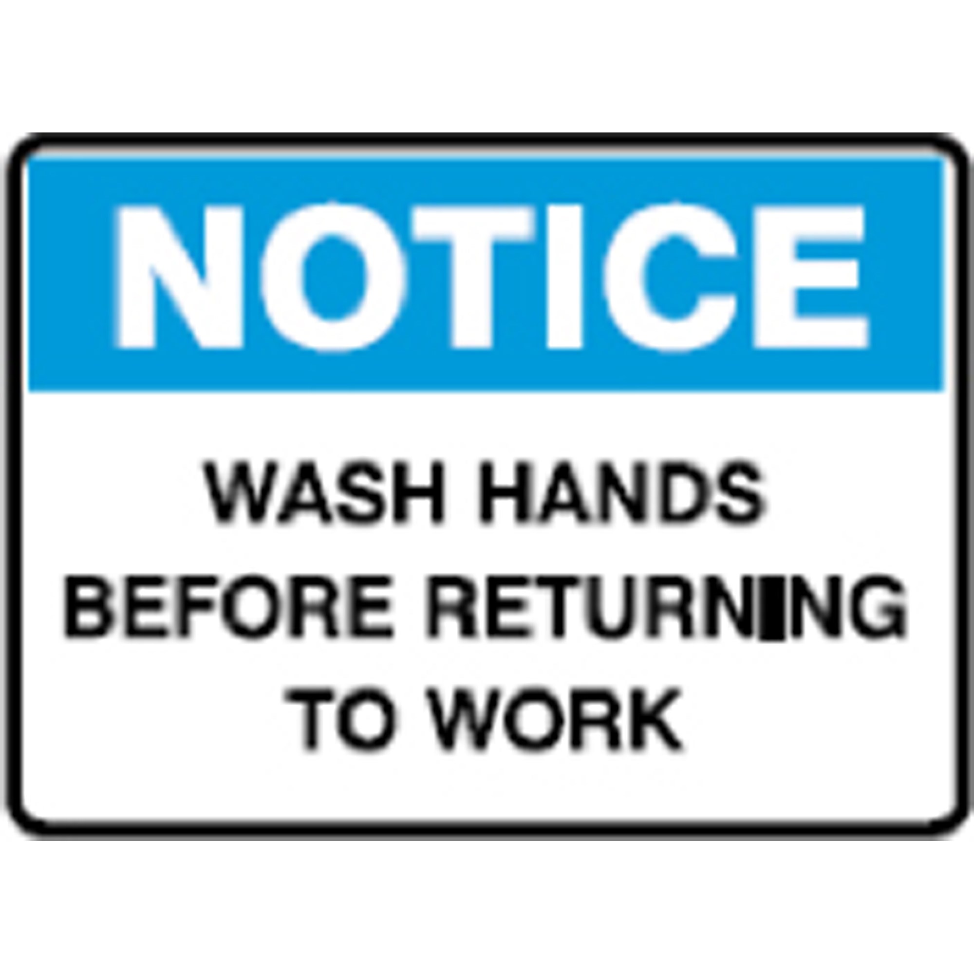 • Wording: Notice Sign Wash Hands Before Returning To Work