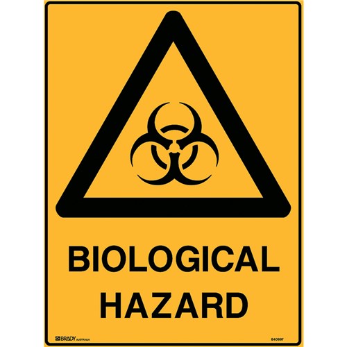 BRADY WARNING SIGN BIOLOGICAL HAZARD 450W X 600MMH POLYPROPYLENE YELLOW AND BLACK