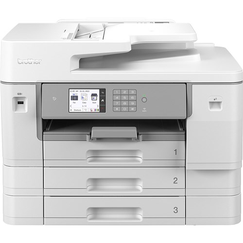 Type: A3 Colour Inkjet Multifunction Printer. Print, scan, copy and fax. Up to 30 ppm print speed. Automatic 2-sided (duplex) A3 print, scan, copy and fax. 3 x 250 paper trays up to A3, 100 sheet multi-purpose tray up to A3. USB, Dual Band (2.4GHz/5Ghz) Wireless Network, Ethernet, Wi-Fi Direct & NFC. 8.8cm colour touchscreen. Up to 50 sheet 2-sided (duplex) ADF up to A3. NFC (Near-Field Communication) for secure authentication, mobile print and scan. Up to 1 years of ink supplied in-box. 2 Years Manufacturer's Warranty.