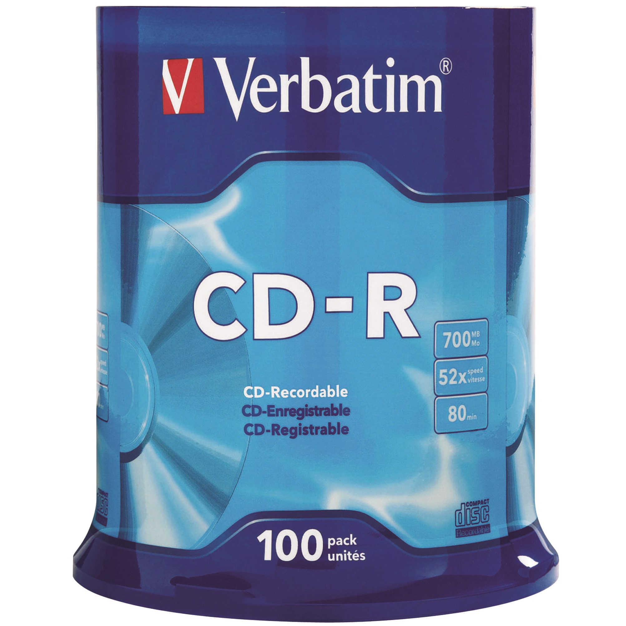 VERBATIM RECORDABLE CD-R 80MIN 700MB 52X SPINDLE PACK OF 100