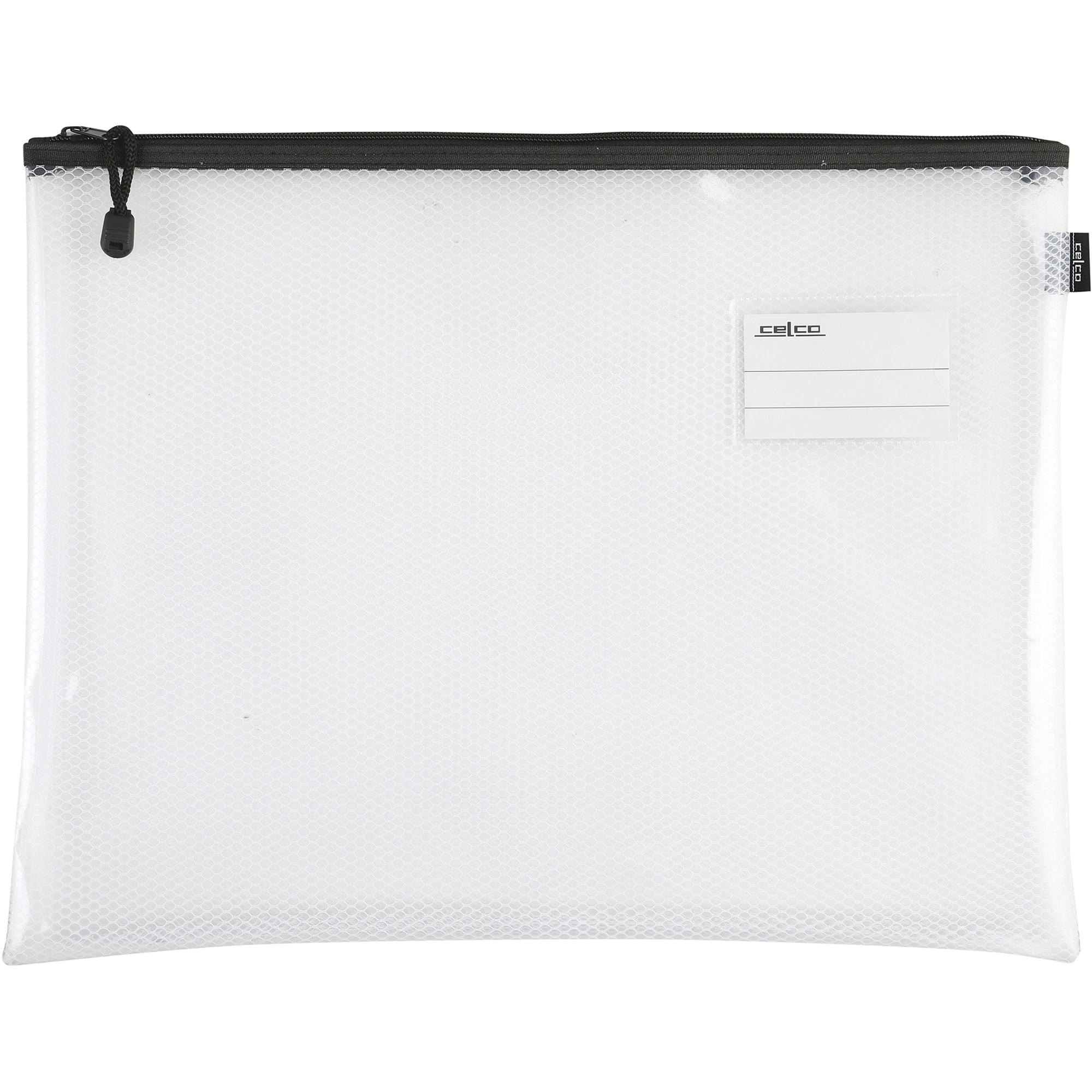 CELCO MESH PENCIL CASE SINGLE ZIP LARGE 450 X 330MM CLEAR