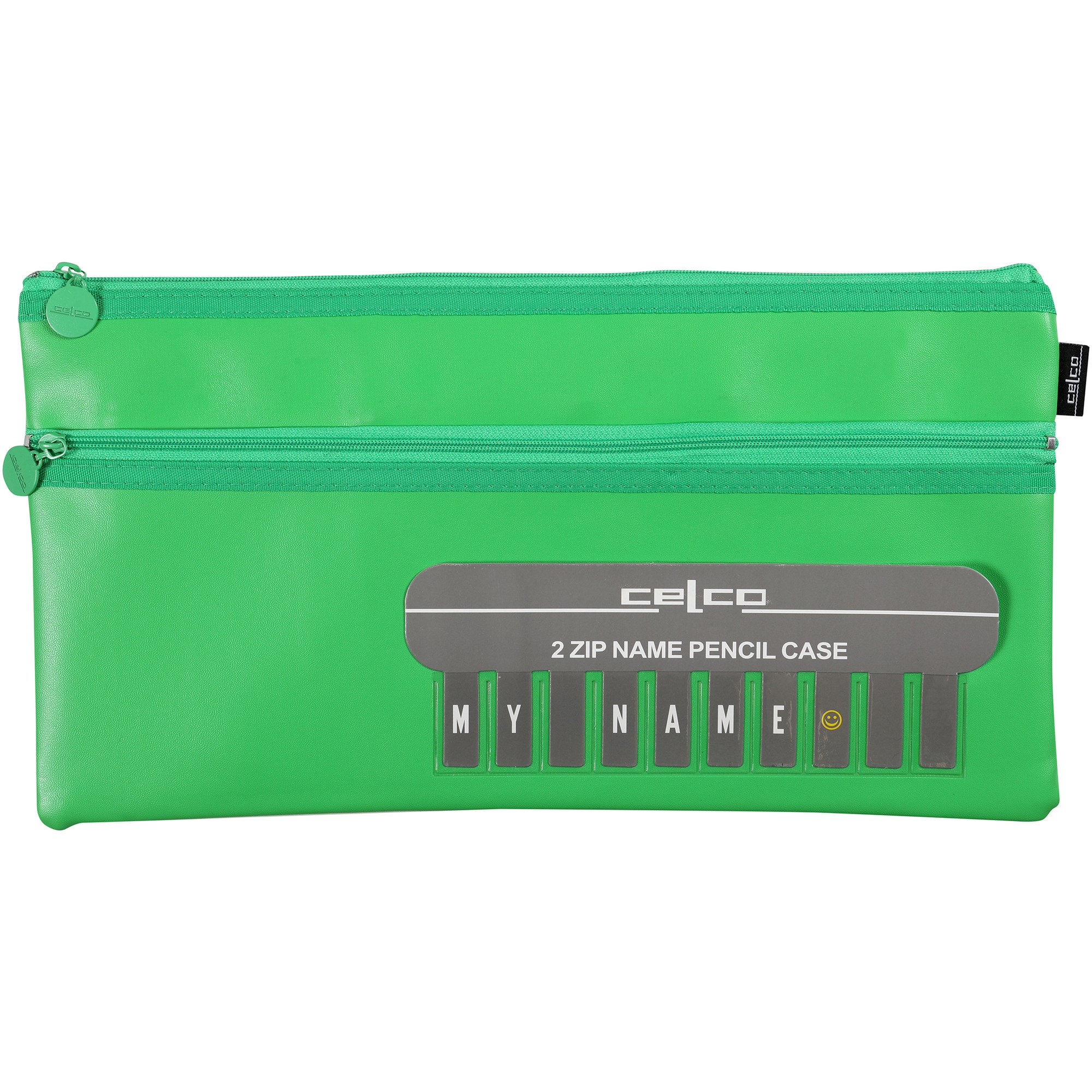CELCO PENCIL CASE NAME TWIN ZIP LARGE 350 X 180MM GREEN