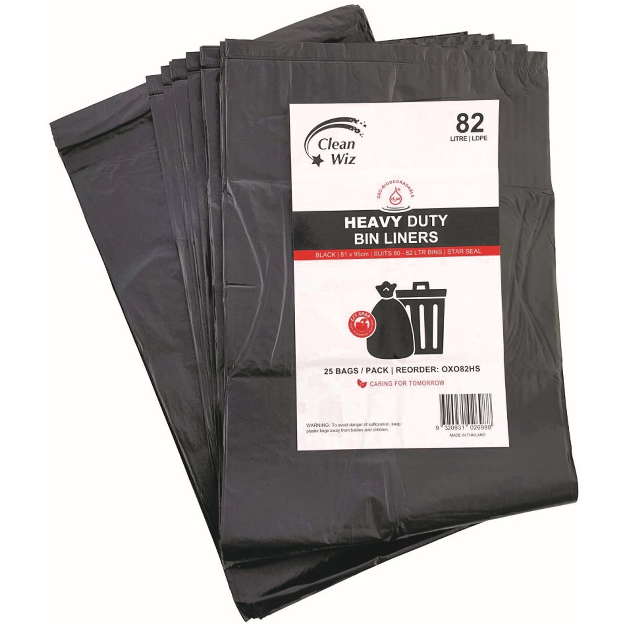 CLEAN WIZ OXO-BIODEGRADABLE HEAVY DUTY BIN LINER 82 LITRES BLACK PACK OF 25