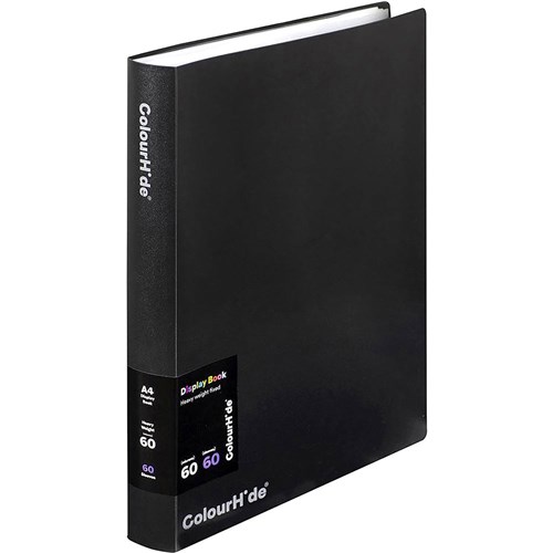 COLOURHIDE FIXED DISPLAY BOOK A4 60 SHEETS BLACK