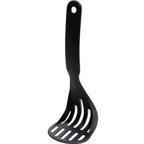 Non-stick. Smooth form, in a resilient plastic, results in no damage to non-stick cookware. Made of durable high grade heat resistant nylon.