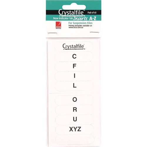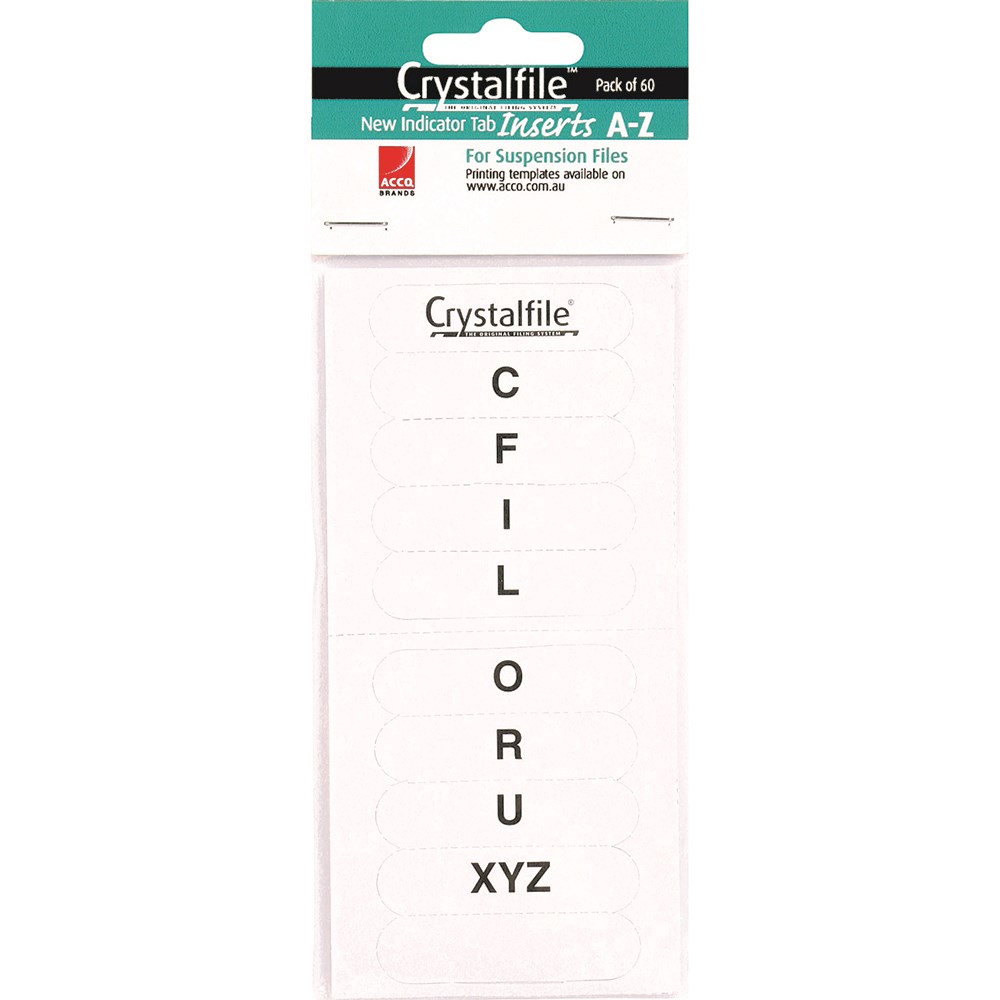 CRYSTALFILE INDICATOR TABS INSERTS A-Z WHITE PACK OF 60