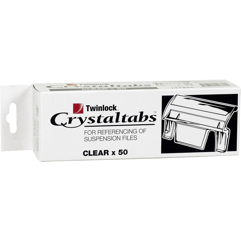CRYSTALFILE TWINLOCK INDICATOR TABS SQUARE EDGE CLEAR PACK OF 50