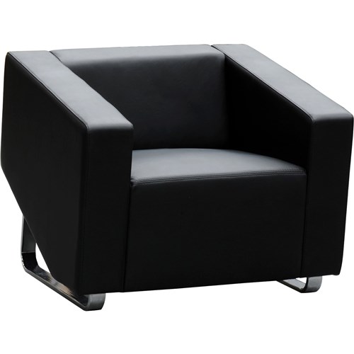 CUBE LOUNGE SINGLE SEATER 860W X 720D X 880MMH BLACK LEATHER