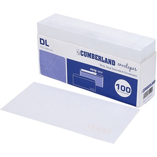 CUMBERLAND PLAIN POST CODE ENVELOPE DL STRIP SEAL SECRETIVE WHITE PACK OF 100