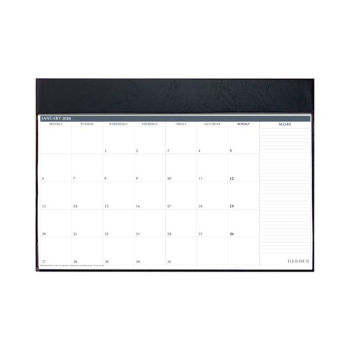 DEBDEN DESKTOP PLANNER 382 X 540MM MONTH TO VIEW WITH BLACK PVC ENCLOSURE