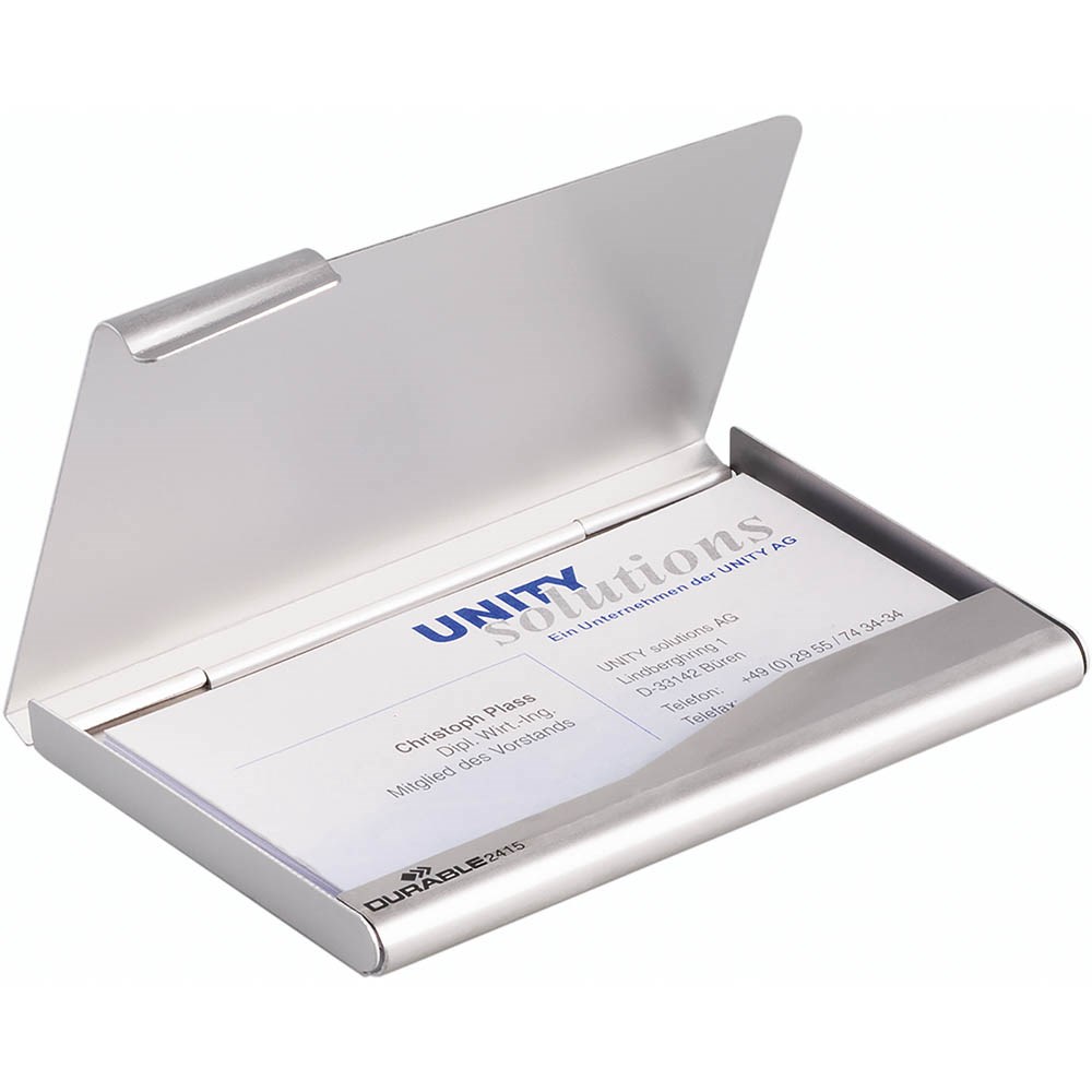 DURABLE BUSINESS CARD BOX ALUMINIUM 20 CARD CAPACITY