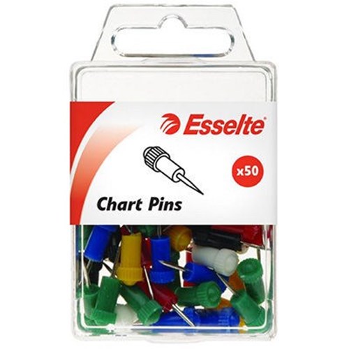 ESSELTE CHART PINS ASSORTED COLOURS PACK OF 50