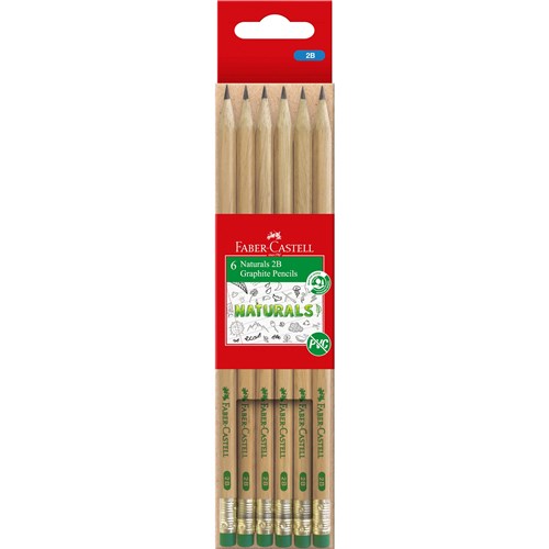 FABER CASTELL GRAPHITE PENCIL NATURALS 2B PACK OF 6