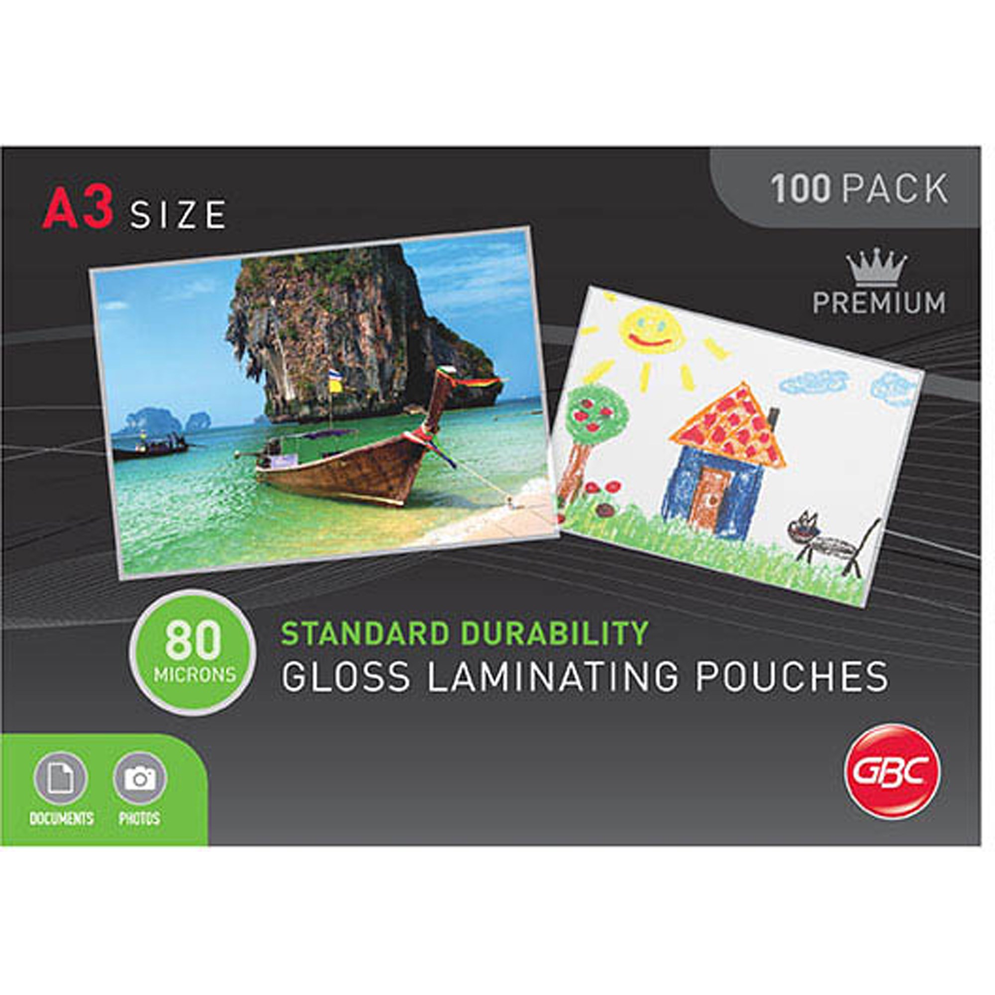 GBC LAMINATING POUCHES A3 80 MICRON GLOSS PACK OF 100