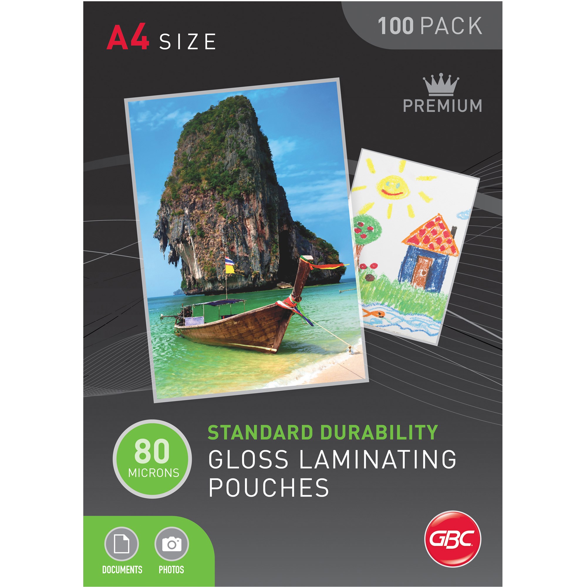 GBC LAMINATING POUCHES A4 80 MICRON GLOSS PACK OF 100