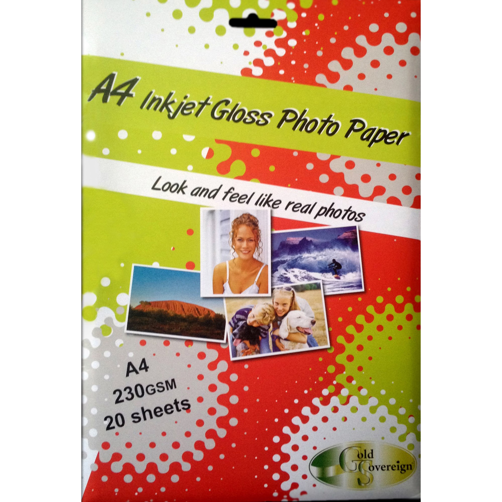 GOLD SOVEREIGN GLOSS PHOTO PAPER A4 230GSM PREMIUM INKJET PACK OF 20