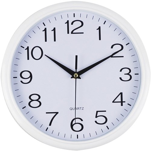 ITALPLAST WALL CLOCK 30CM ROUND WITH LARGE NUMBERS WHITE FRAME WHITE FACE