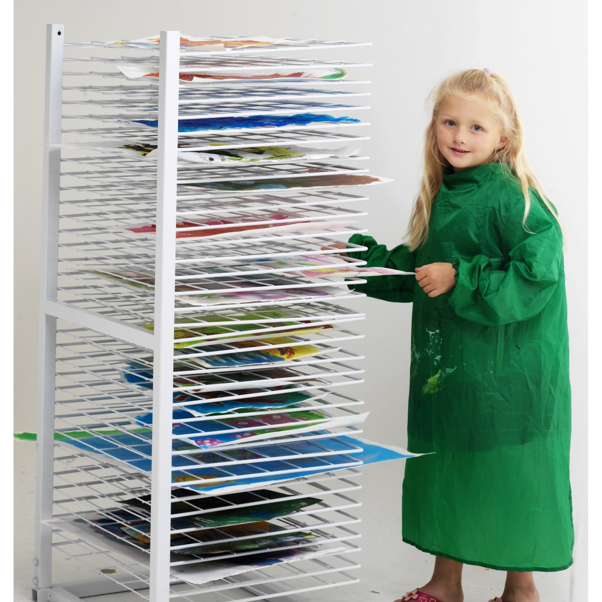 Ideal for space efficient storing of multiple artworks while drying. 4 castor wheels for easy mobility. Unit size: 572x1330mm. Tray size: 557x460mm.