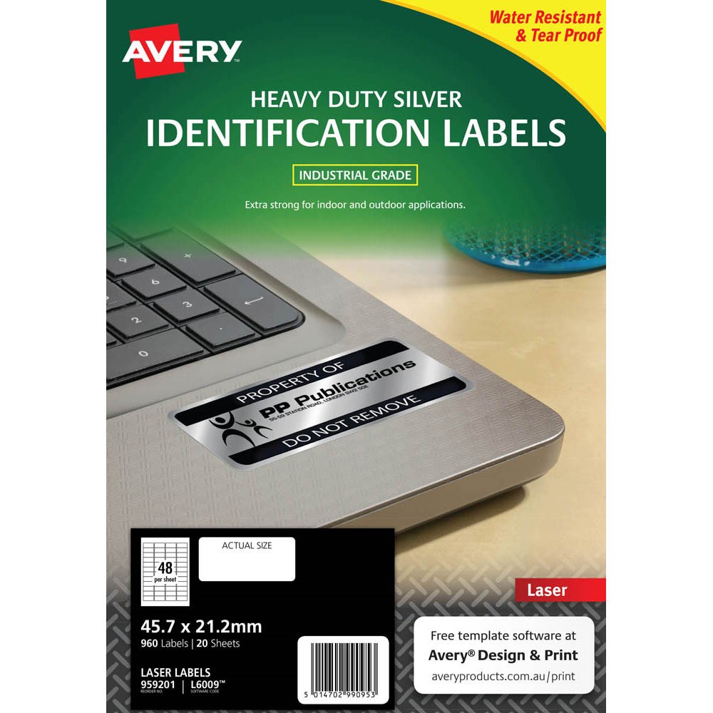 AVERY HEAVY DUTY LASER LABELS ASSET TAGS SILVER L6009 45.7X21MM 48UP 960 LABELS