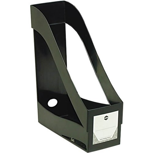 Nestable magazine holders. Allows you to neatly store away when not in use. Large identification panel on front makes finding your files easy. Made from 100% recycled High Impact Polystyrene (HIPS). 100% recyclable after use. Good Environmental Choice certified product.
