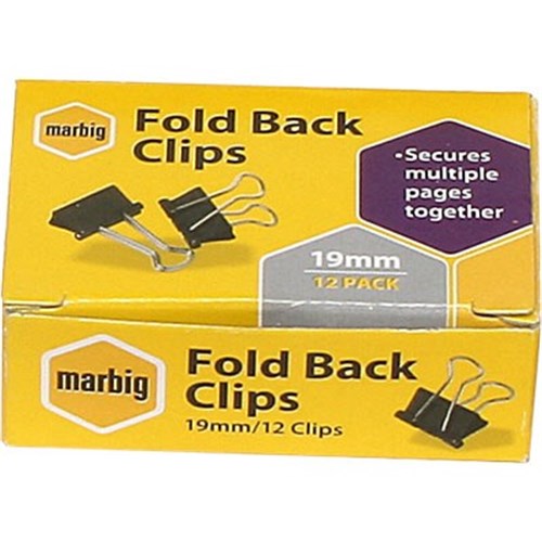 MARBIG FOLDBACK CLIPS 19MM BLACK BOX OF 12