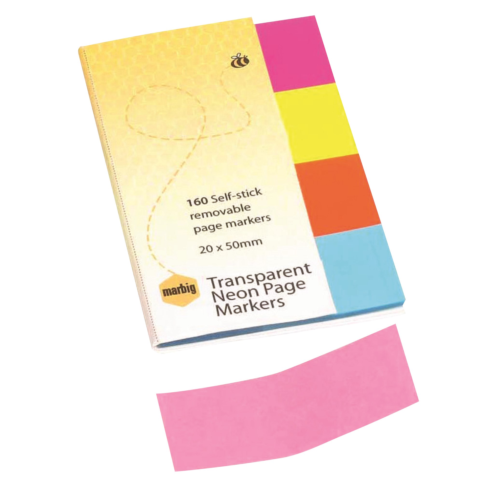 MARBIG PAGE MARKERS 20 X 50MM TRANSLUCENT NEON 40 SHEET PADS PACK OF 4