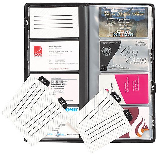 MARBIG STANDARD BUSINESS CARD HOLDER A-Z INDEXED 255 X 125MM 96 CARD CAPACITY BLACK