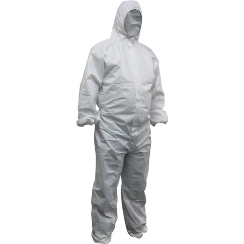 Lightweight polypropylene material with hood. Low cost protection for clean up or handling non-hazardous material. Elasticised wrist, ankles, hood and waist. Easy to put on and remove. Two way zipper opening. Ready access to clothing underneath. Durable and economical. Applications: Painting and decorating, mechanics, general maintenance and food manufacturing. Available is sizes Small to 3XL.