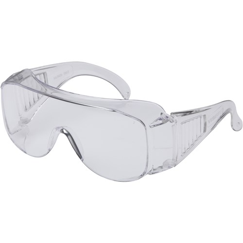 Certified to AS/NZS1337.1:2010 Lic#BMP557823 (Benchmark). Designed to fit over prescription glasses. Ideal for site visitors. Integrated side shields with vents. 99.9% UV protection.