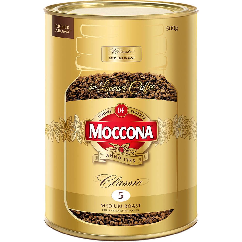 • The Moccona Classic Medium Roast can is a premium freeze dried instant coffee in a re-sealable can.
