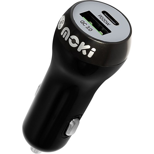 MOKI PD 20W USB-C AND QC 3.0 USB-A CAR CHARGER BLACK