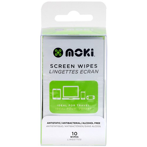 10 pre moistened wipes, ideal for cleaning grime and fingerprints from smartphones, tablets and portable devices. Passed SGS testing. Removes 99.9% of bacteria for 24 hours. Clean portable screens weekly and touchscreens daily. Pre moistened, individually sealed wipes are the perfect size to keep in your car, bag or pocket. Alcohol free.