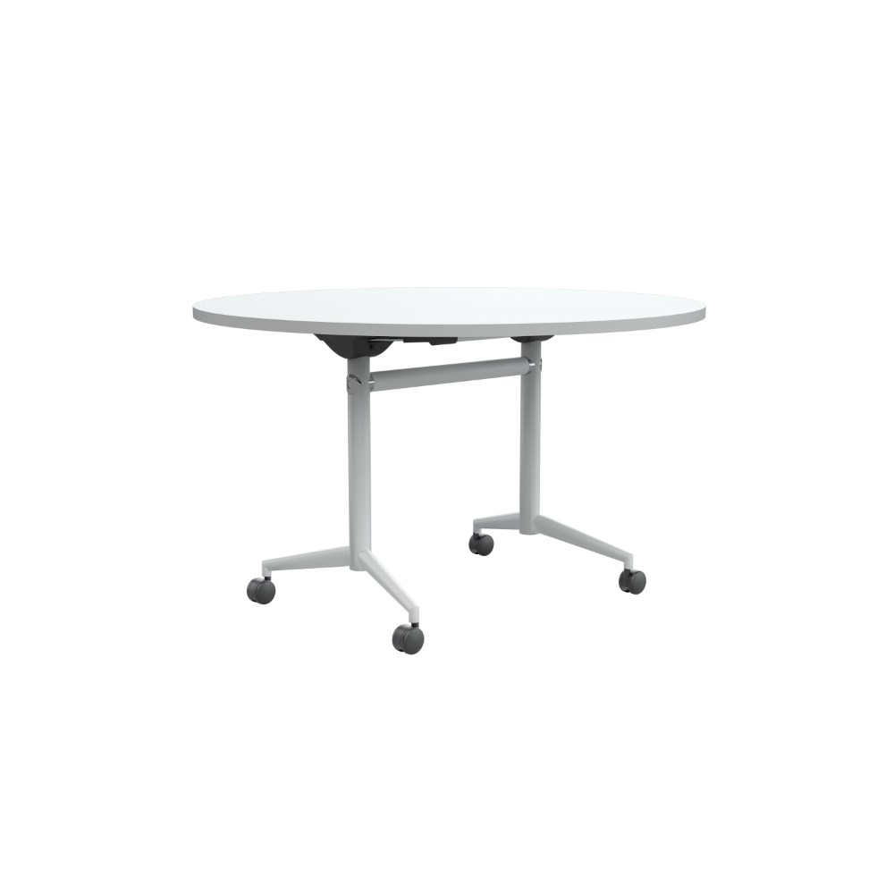 OLG UNI ROUND FLIP TABLE 1200D X 720MMH WHITE TOP WHITE FRAME