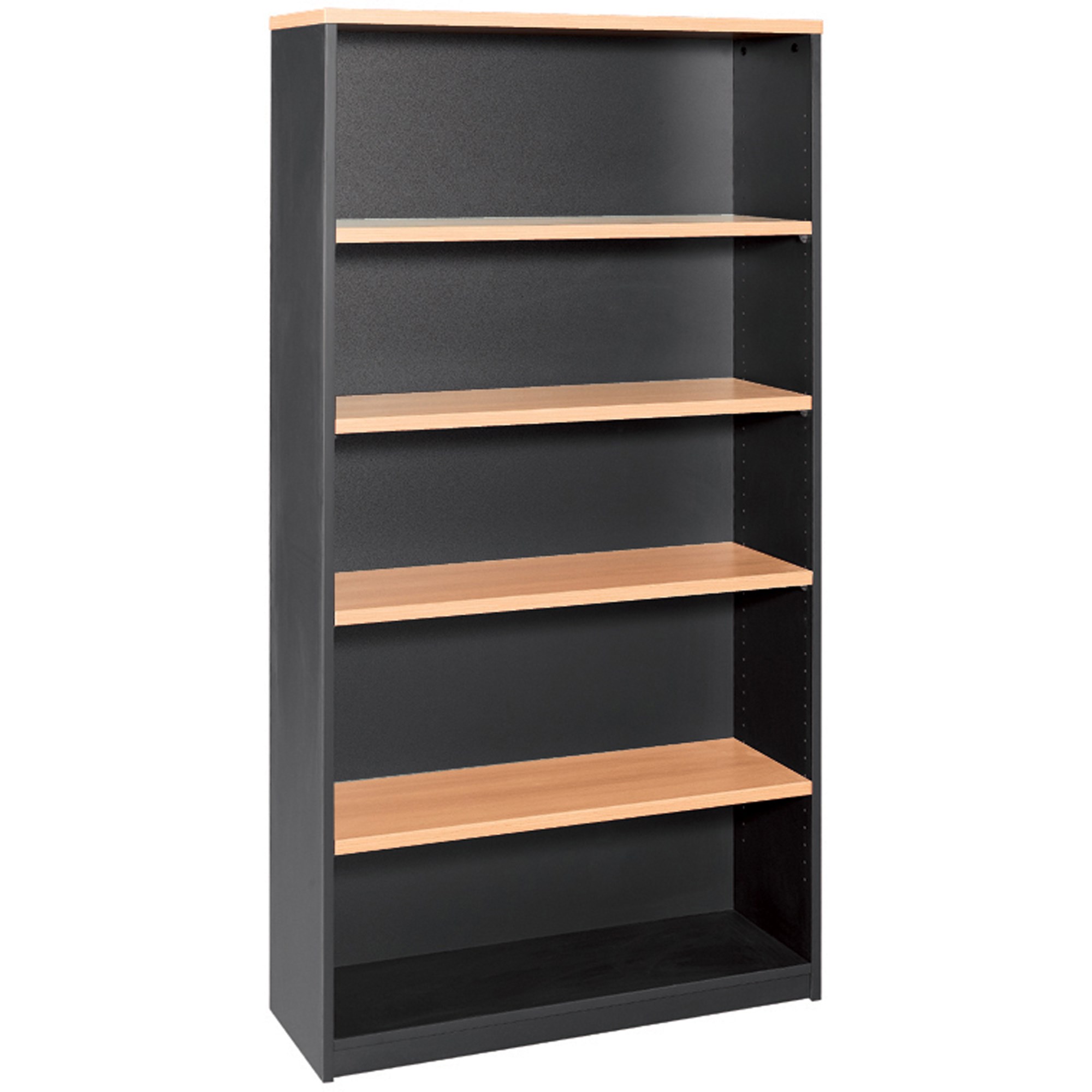 OM BOOKCASE 900W X 320D X 1800MMH 4 SHELF BEECH AND CHARCOAL