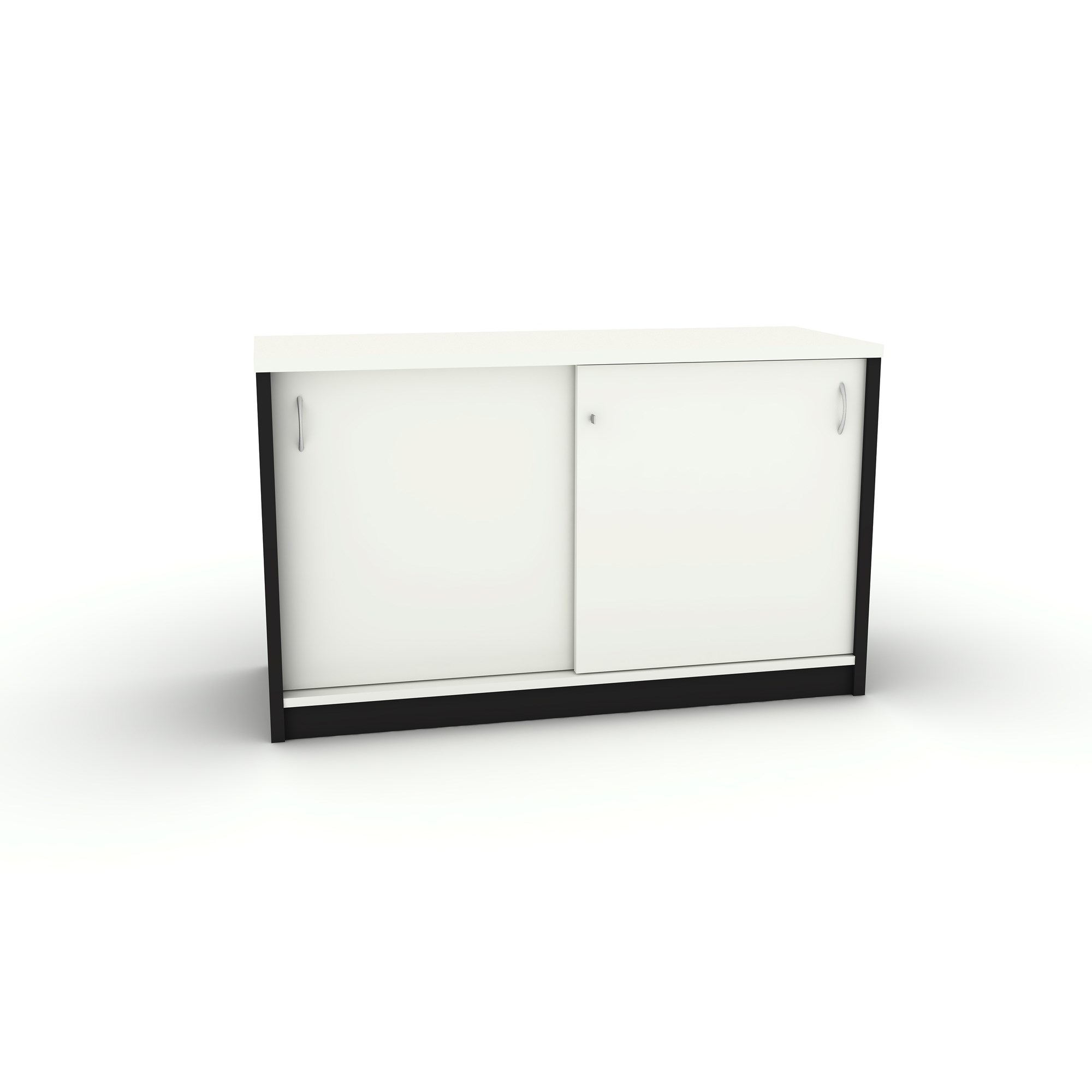 OM CREDENZA 1200W X 450D X 720MMH LOCKABLE SLIDING DOORS WHITE AND CHARCOAL