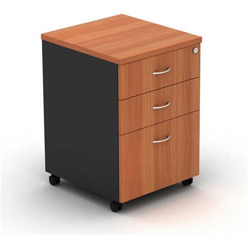 OM MOBILE PEDESTAL 2 DRAWER 1 FILE 468W X 510D X 685MMH CHERRY AND CHARCOAL