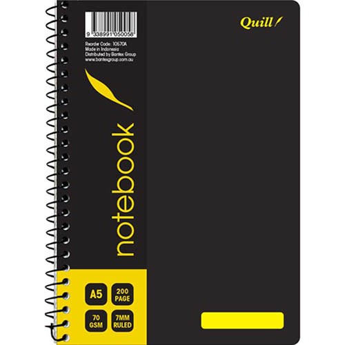 QUILL NOTEBOOK A5 7MM RULED 70GSM 200 PAGES BLACK