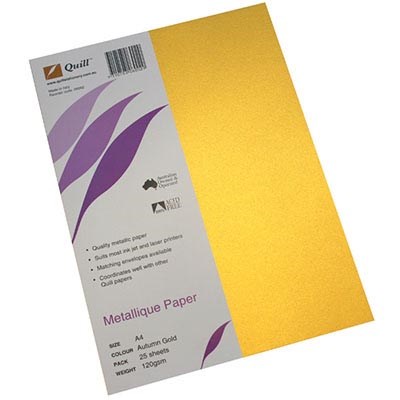 QUILL METALLIQUE PAPER A4 120GSM AUTUMN GOLD PACK OF 25