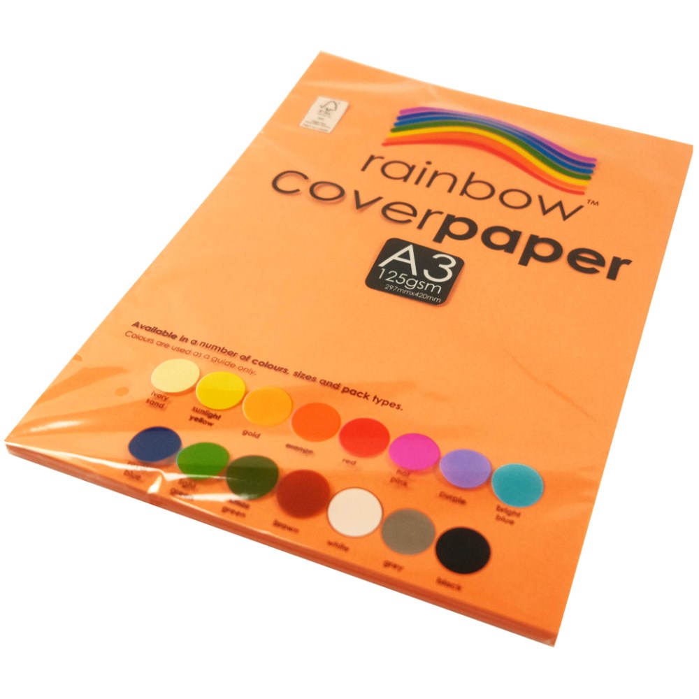 RAINBOW COVER PAPER A3 125GSM SAFFRON ORANGE 100 SHEETS